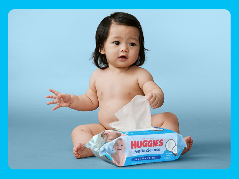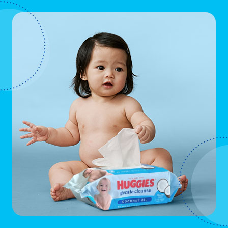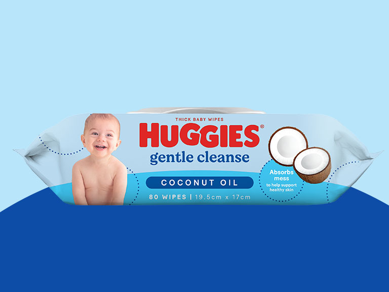 Trust us baby, things will get messy. Huggies Gentle Cleanse Coconut Oil Baby Wipes absorb messes to help support healthy skin. Designed with 90% natural ingredients^ and the ultimate combination of thickness, softness and absorbency for a 3in1 clean that ensures nothing is left behind on your delicate skin.