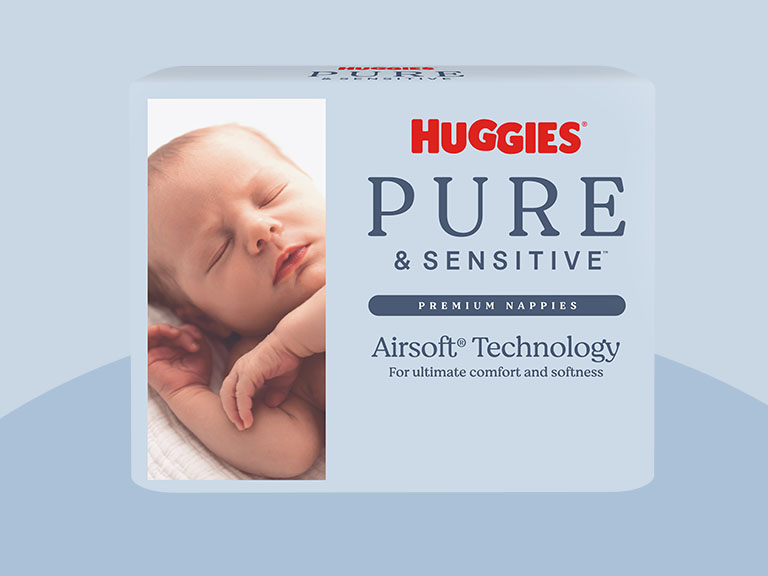Experience gentle protection with every change with Huggies Pure and Sensitive premium nappies.