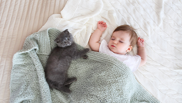 Cats love sleeping somewhere warm and high and nothing is cosier than a baby’s cot. If you are worried about your cat jumping into the cot, you can install a screen door- this way you can still see and hear the baby but puss can not access the room. A tall baby gate may also do the job, although some cats may still jump over this.