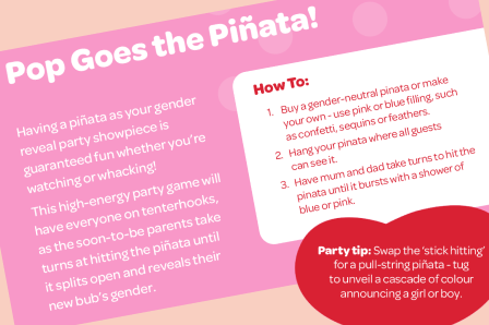 Inside the ebook, you’ll find everything you need to plan the ultimate gender reveal party. Explore creative games like balloon boards and scavenger hunts, plus decorating tips, food ideas, and a handy checklist to keep your planning on track. Whether you're revealing with cupcakes or confetti, this guide will help you create a moment to remember.