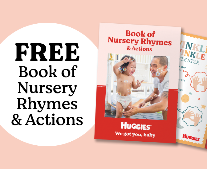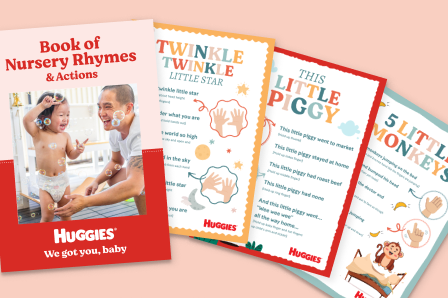 Our Huggies Book of Nursery Rhymes & Actions is a fun way to engage your little one, through music and movement. The ebook features timeless favourites including Incy Wincy Spider, Twinkle Twinkle Little Star, Open Shut The, Five Little Monkeys and more.